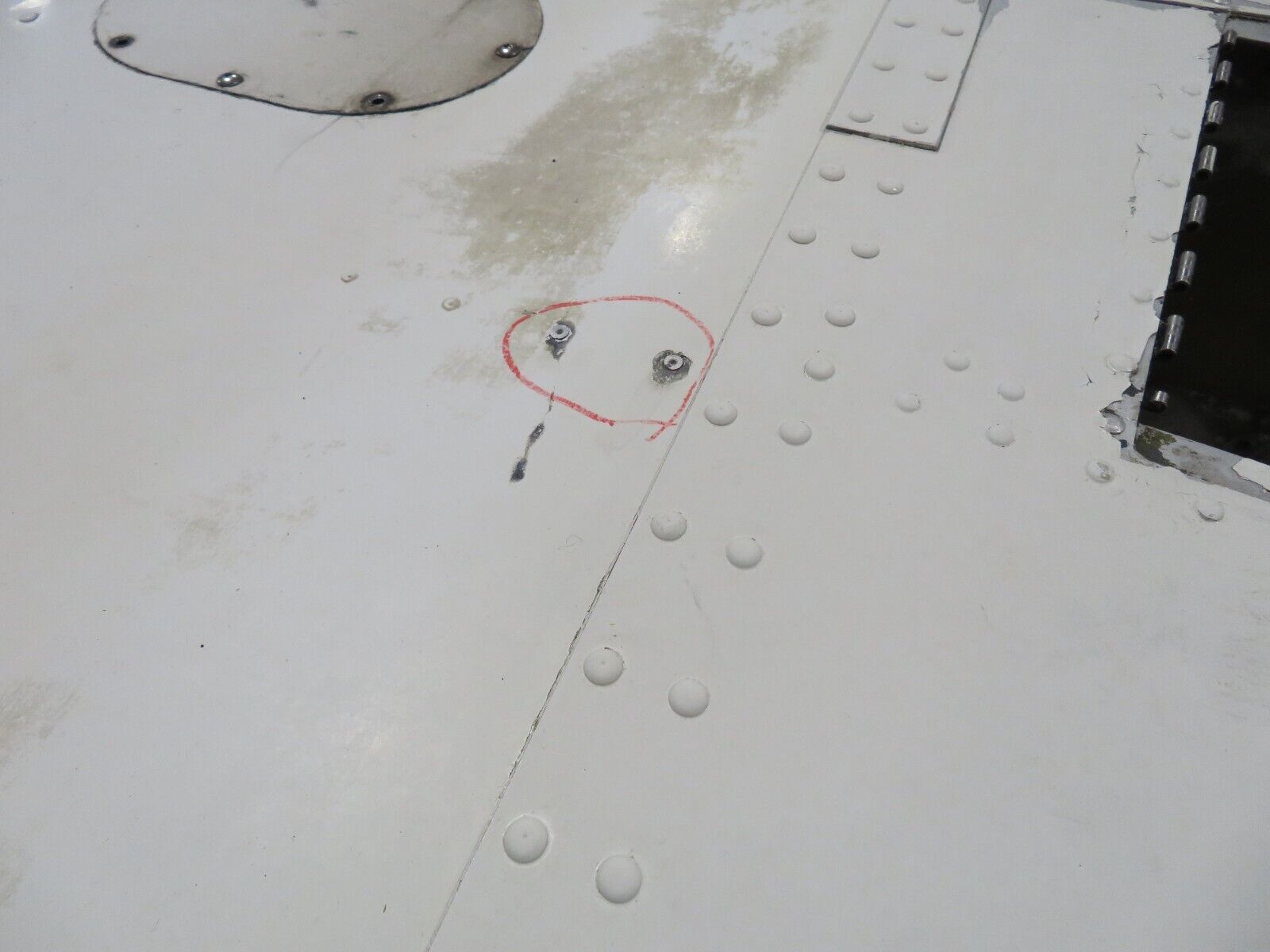 There are Cherrymax rivets on the bottom side of the Nacelle. Top inboard of the Nacelle a few fairing screws are broken off - see photos. Wingwalk baffles are in good condition.
