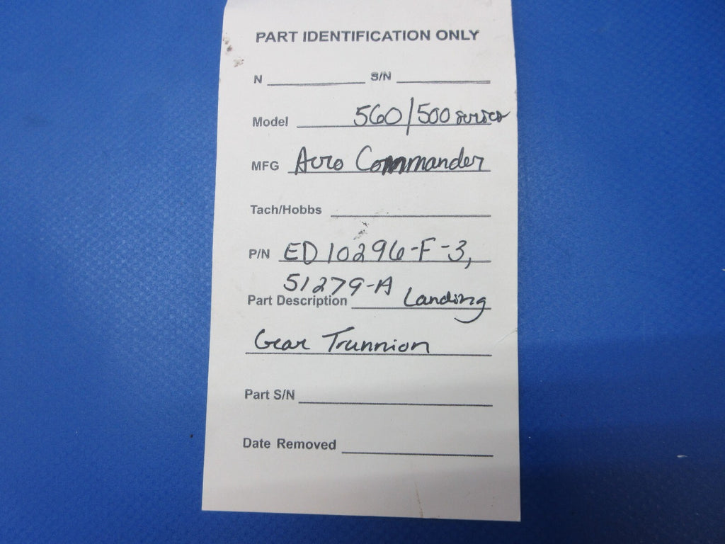 Aero Commander 560 / 500 Series Landing Gear Trunnion. P/N ED10296-F-3, 51279-A. Guaranteed to pass inspection or your money back.