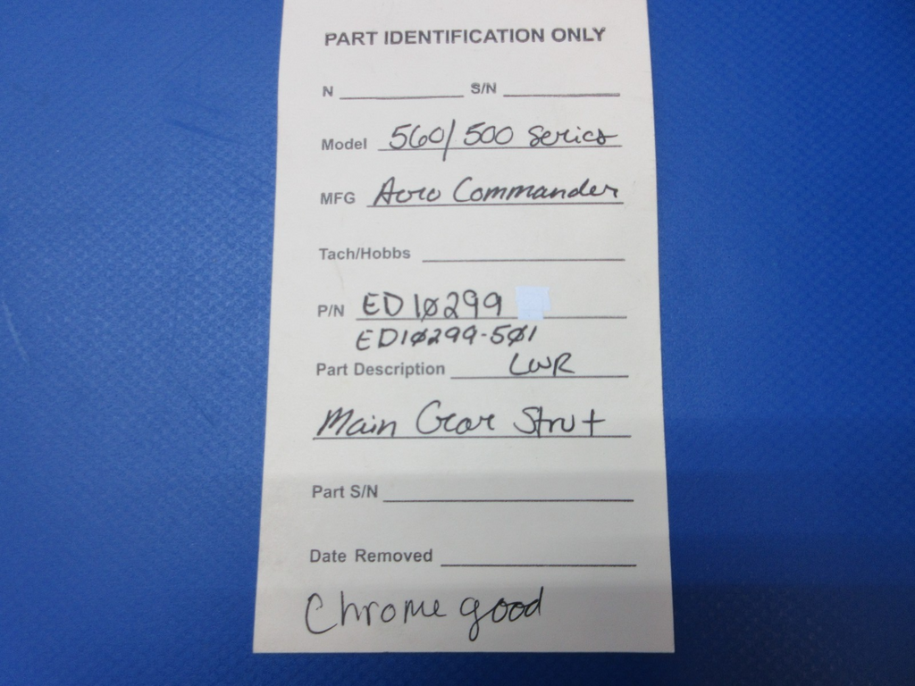 Aero Commander 560 / 500 Series Lower Main Gear Strut. P/N ED10299, ED10299-501. Chrome is good. Guaranteed to pass inspection or your money back.