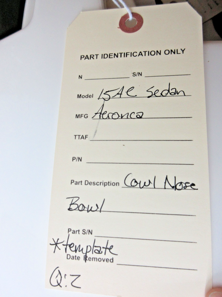 Aeronca 15AC Sedan Fiberglass Reproduction Cowl Nose Bowl. Due to multiple quantities, the buyer may not receive the exact item pictured. Guaranteed to pass inspection or your money back.