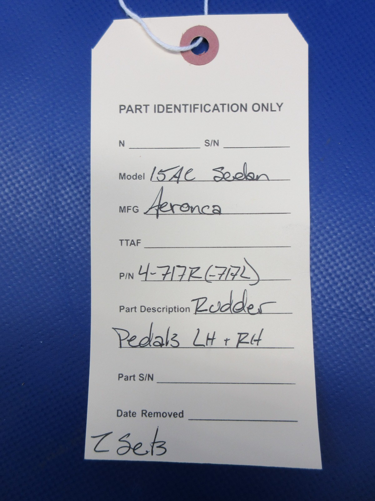 Aeronca 15AC Sedan Rudder Pedals LH & RH P/N 4-717L, 4-717R SET OF 2 (1025-446)