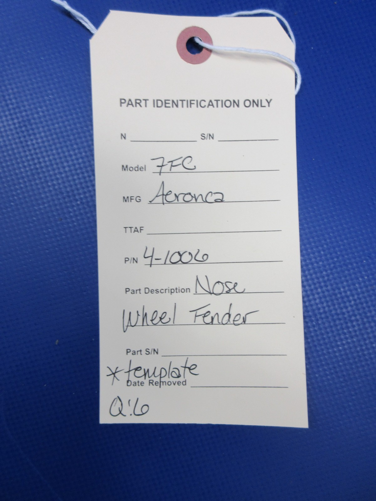 Aerona 7FC Nose Wheel Fender. Fiberglass Reproduction of P/N 4-1006. Guaranteed to pass inspection or your money back.