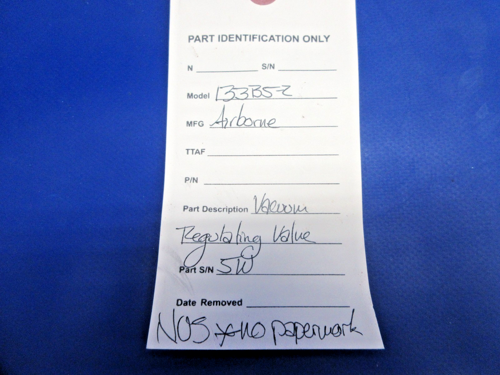 Airborne 133B5-2 Vacuum Regulating Valve. S/N 5W. NEW OLD STOCK. No Paperwork.