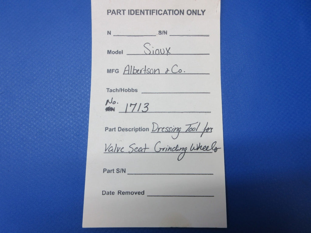 Albertson & Co. Sioux Dressing Tool for Valve Seat Grinding Wheels. No. 1713. Guaranteed to pass inspection or your money back.