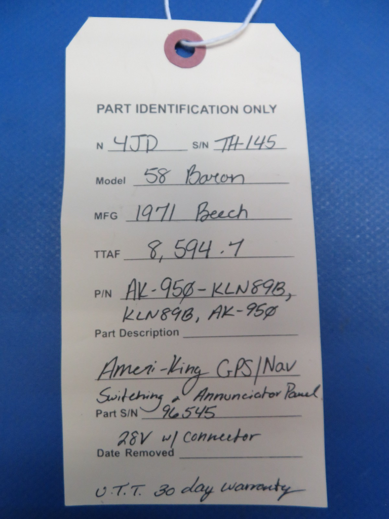 30 Day Money Back Guaranteed less shipping costs. It is the buyers responsibility to determine the parts suitability for installation and airworthiness upon inspection.