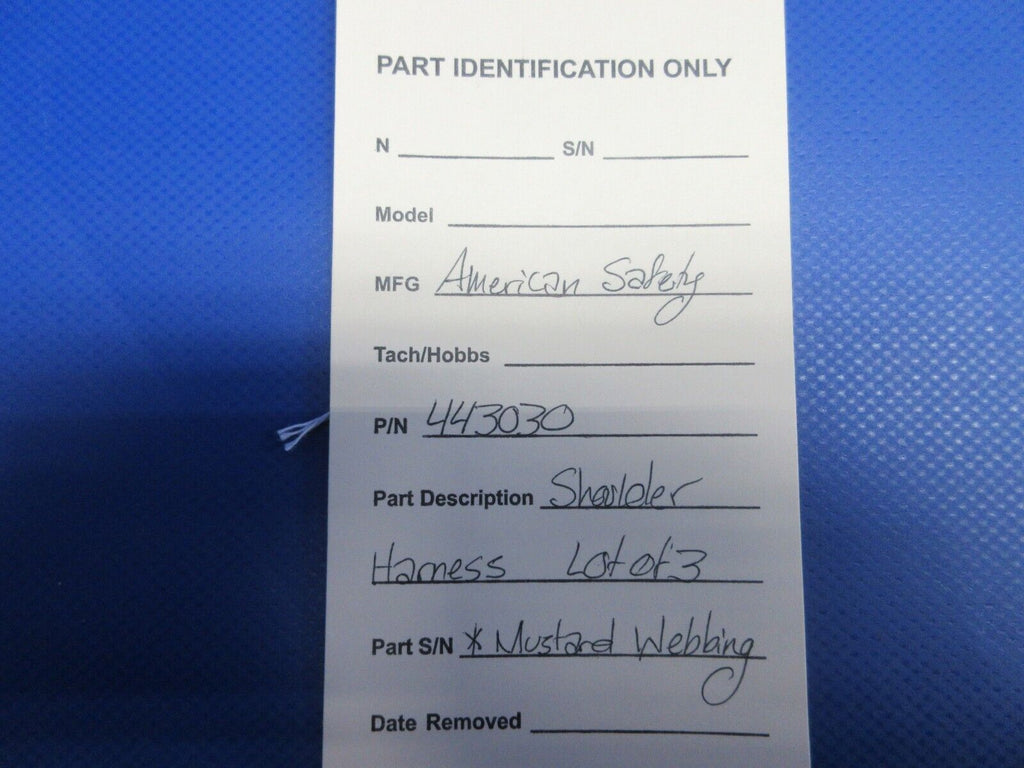American Safety Shoulder Harness. P/N 443030. LOT OF 3. Mustard Webbing. Guaranteed to pass inspection or your money back.