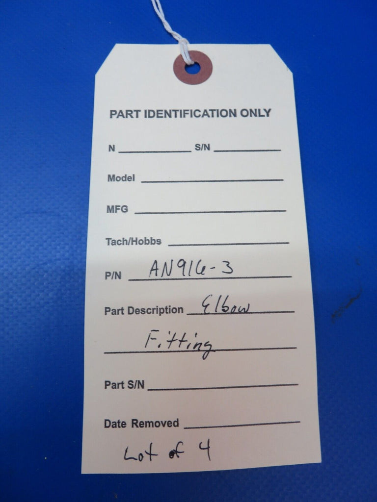Elbow Fitting Aluminum. P/N AN916-3. LOT OF 4. New Old Stock. Guaranteed to pass inspection or your money back.