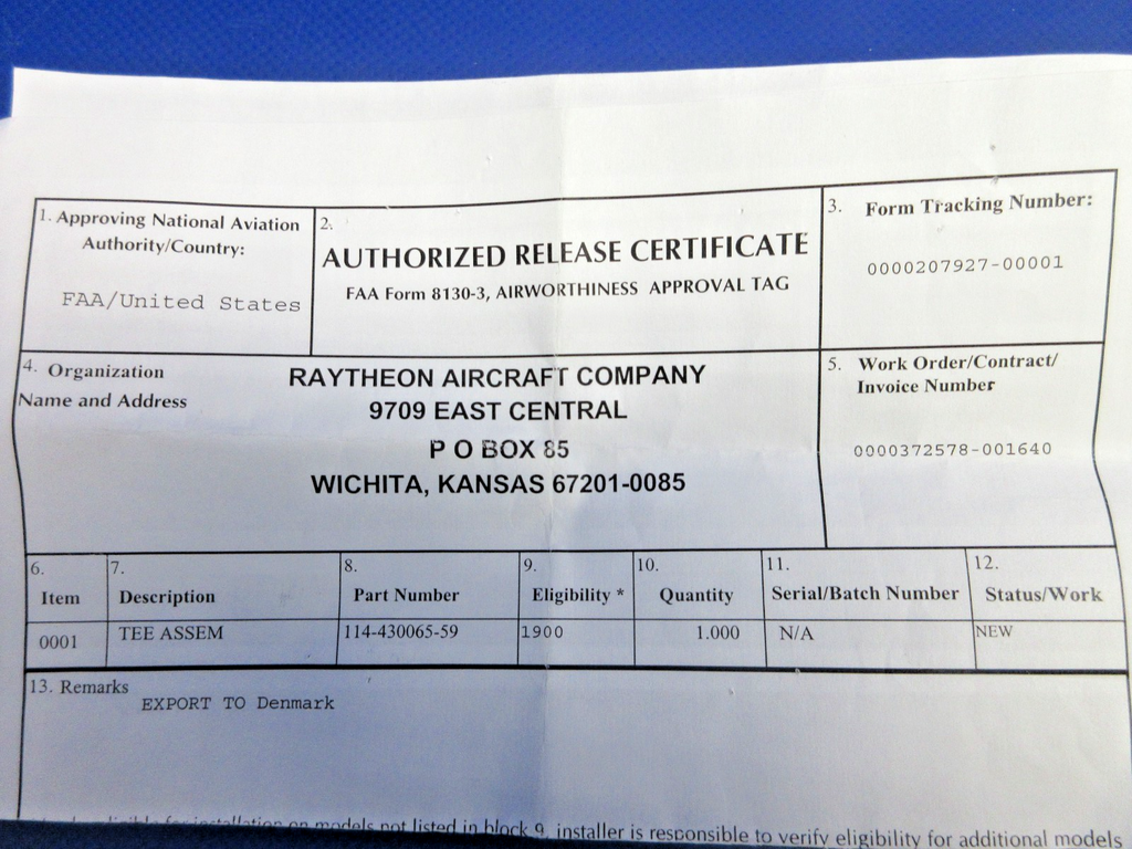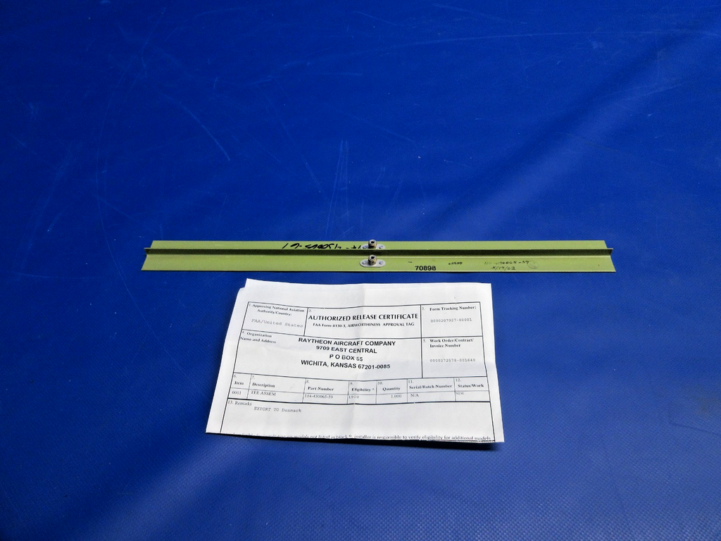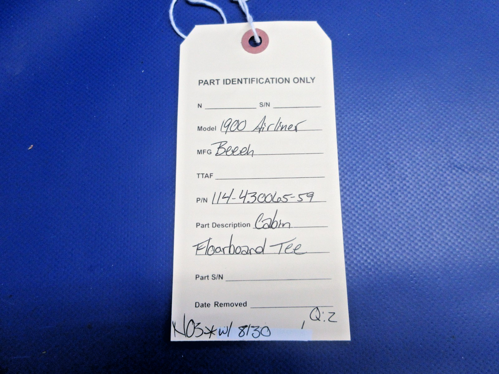 Beech 1900 Airliner Cabin Floorboard Tee With 8130. P/N 114-430065-59. NEW OLD STOCK. Due to multiple quantities buyer may not receive exact item pictured. Guaranteed to pass inspection or your money back.