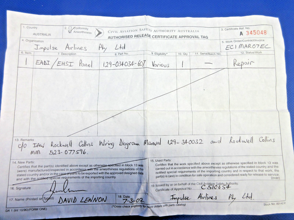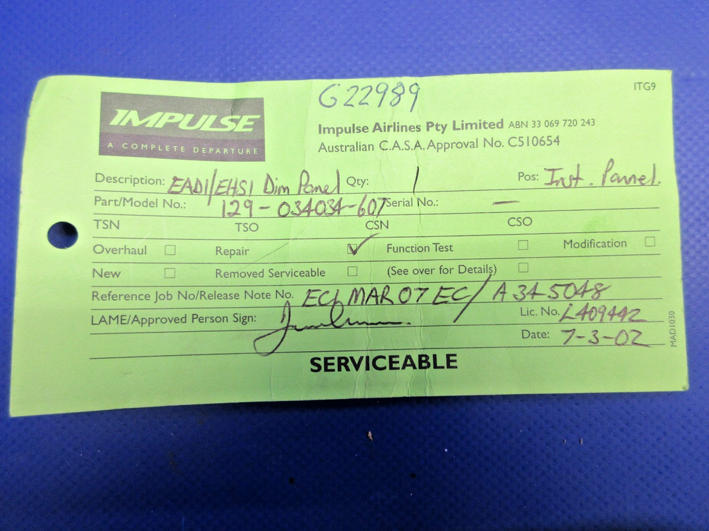 Beech 1900D Airliner EADI/EHSI Dim Panel. P/N 129-034034-607. With Australia Form one & Removal Tag.