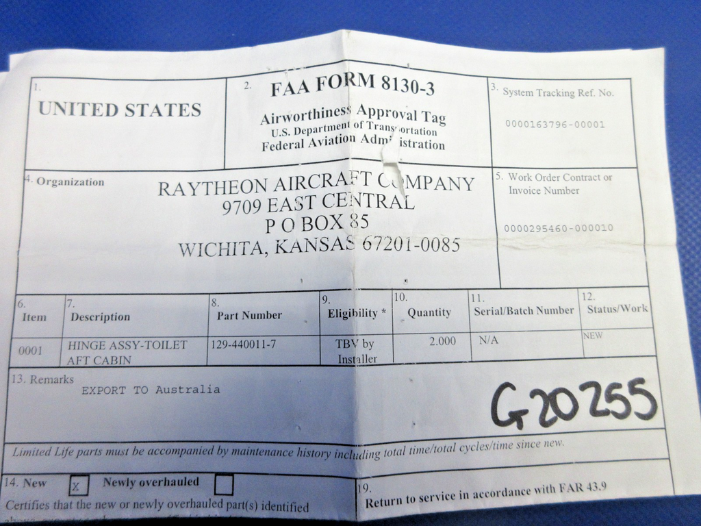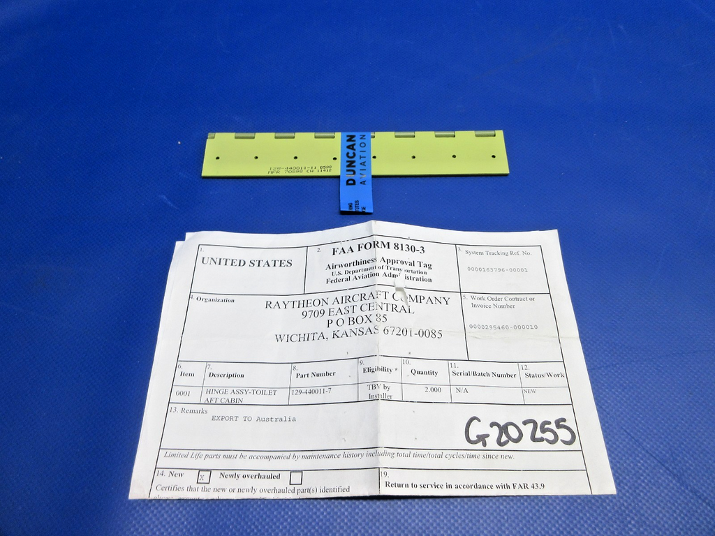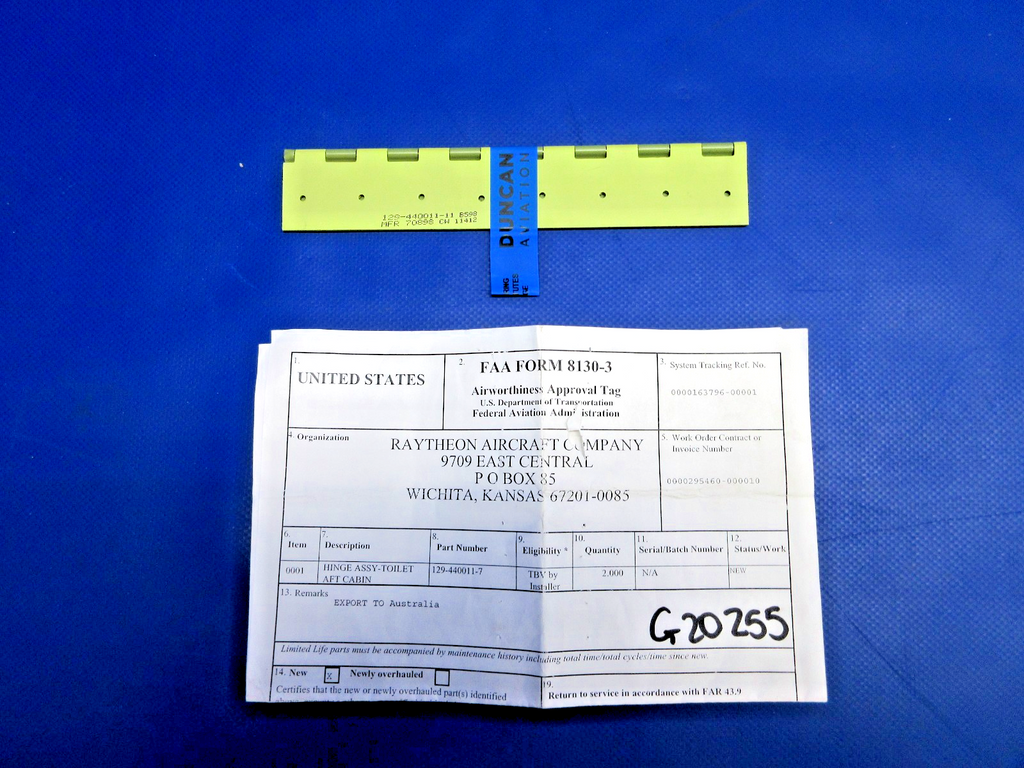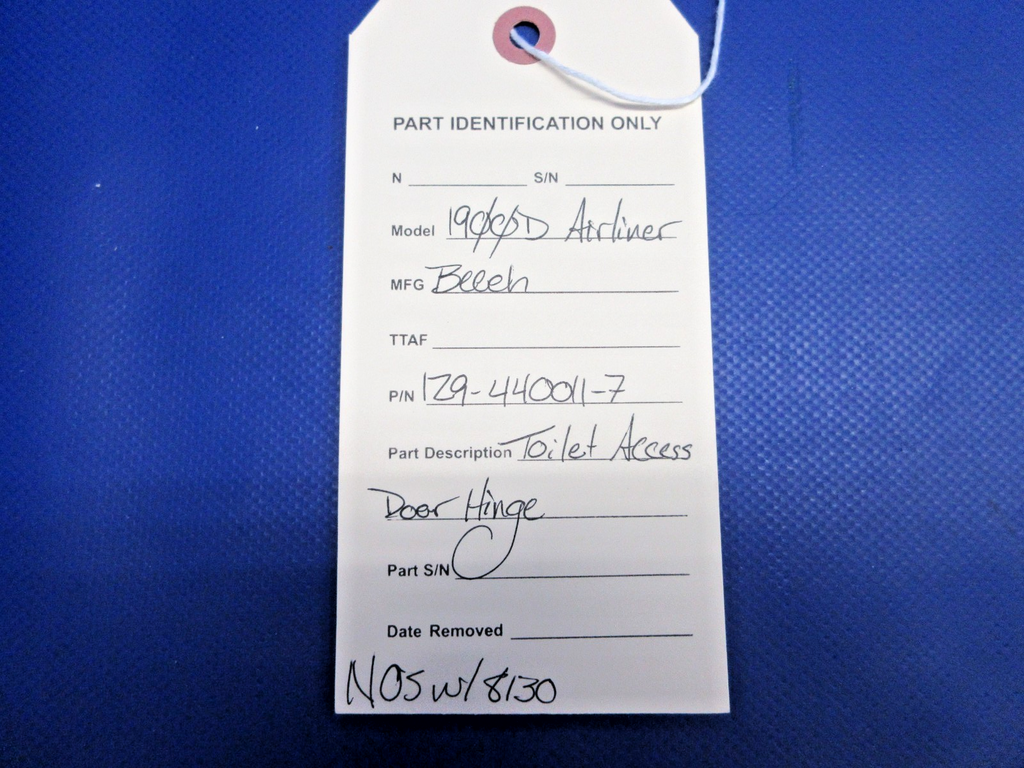 Beech 1900D Airliner Toilet Access Door Hinge With 8130. P/N 129-440011-7. NEW OLD STOCK. Guaranteed to pass inspection or your money back.