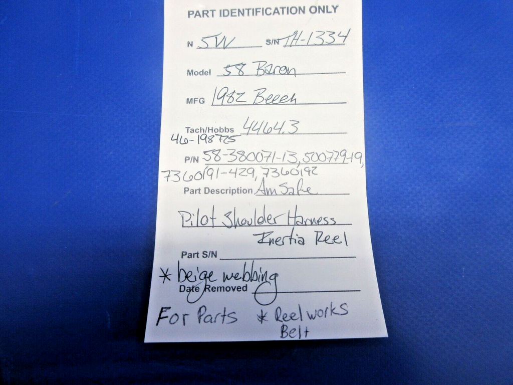 Removed from a parted out 1982 Beech 58 Baron N5VV, S/N TH-1334. Aircraft TT4464.3 hours.