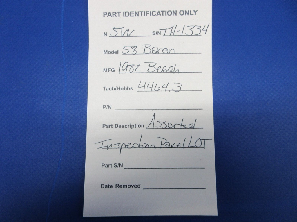 Beech 58 Baron Assorted Inspection Panel. LOT. Removed in good condition from a parted out 1982 Beech 58 Baron N5VV, S/N TH-1334. Aircraft TT4464.3 hours. Guaranteed to pass inspection or your money back.