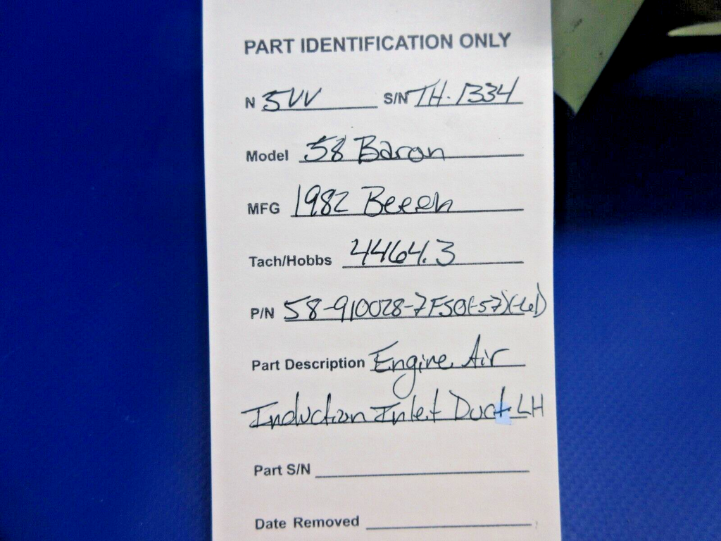 Beech 58 Baron Engine Air Induction Inlet Duct LH P/N 58-910028-7 (0225-2075)