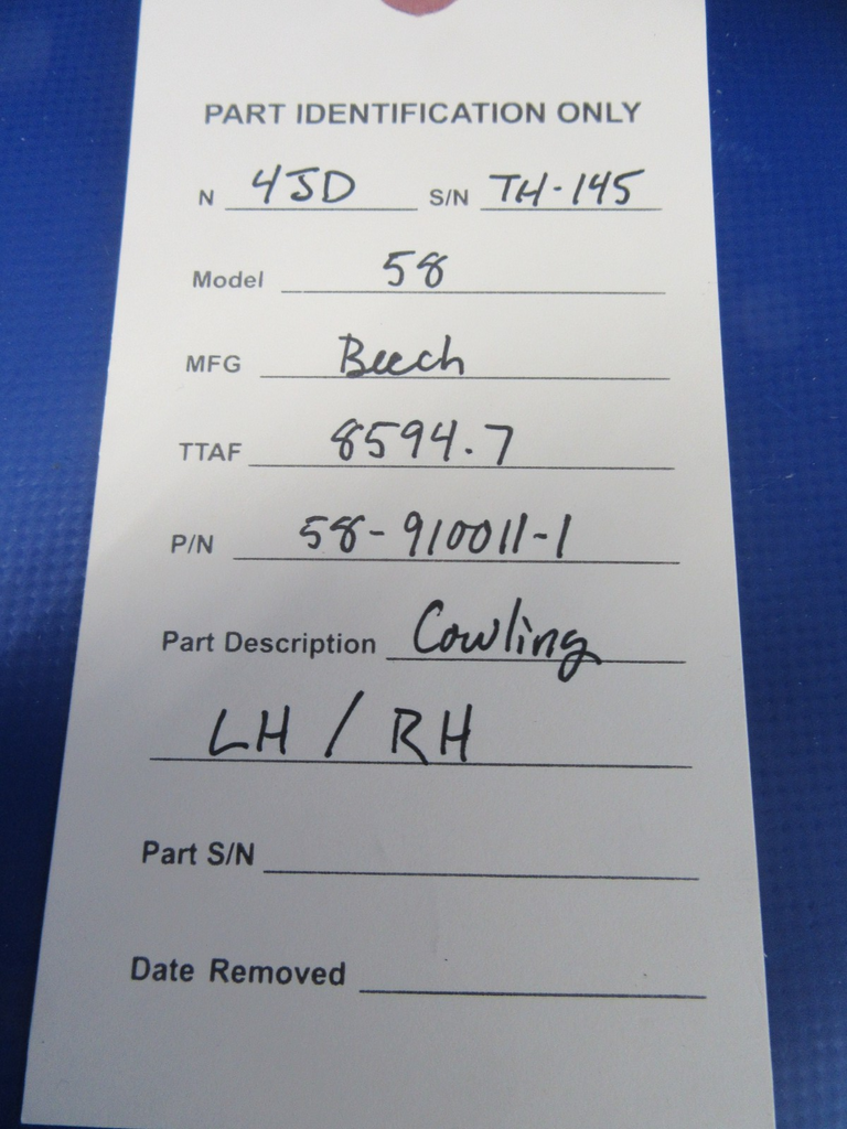 Beech 58 Baron Engine Cowling P/N 58-910011-1, LH or RH (1025-22)