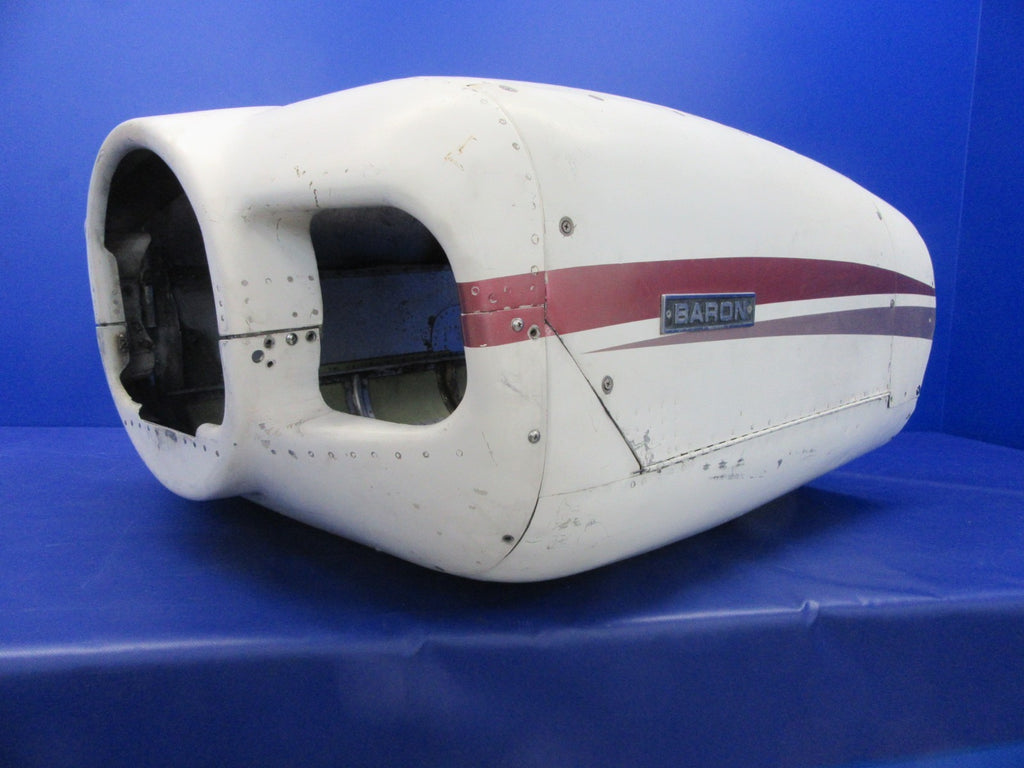 Beech 58 Baron Engine Cowling P/N 58-910011-1. LH or RH, fits S/Ns TH-001 through TH-384. This cowl was in the LH position. Removed from a parted out 1971 Beech 58 Baron N4JD, S/N TH-145. TTAF 8,594.7. Guaranteed to pass inspection or your money back.