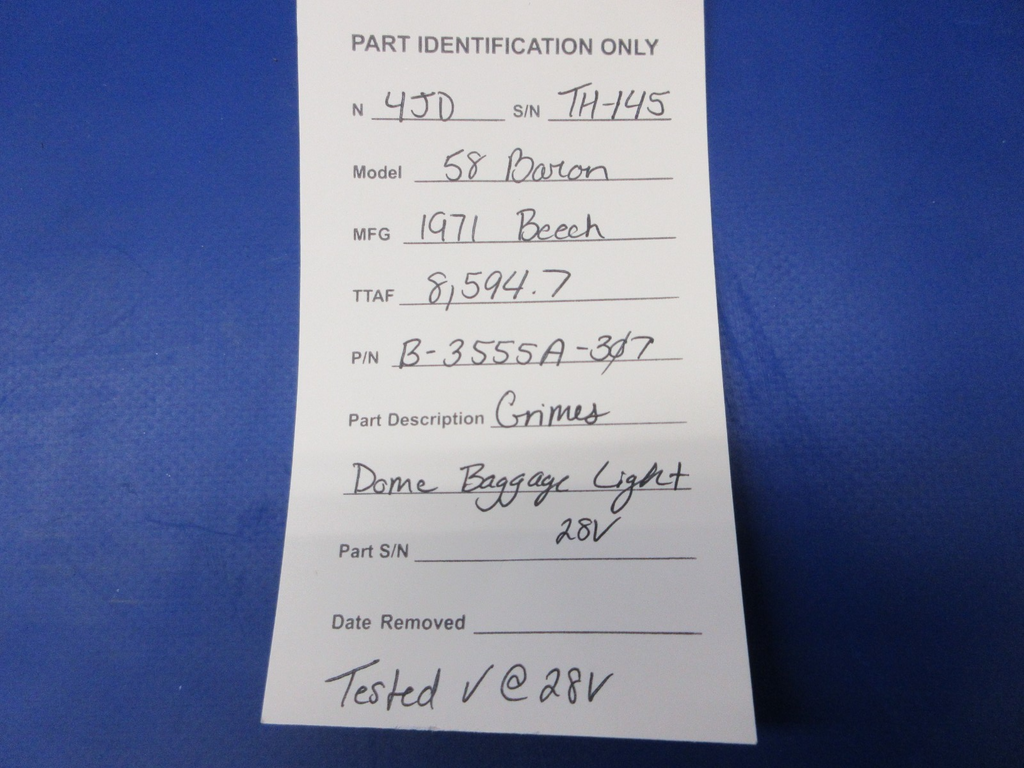 Beech 58 Baron Grimes Dome Baggage Light 28v P/N B3555A307 TESTED (07251340)