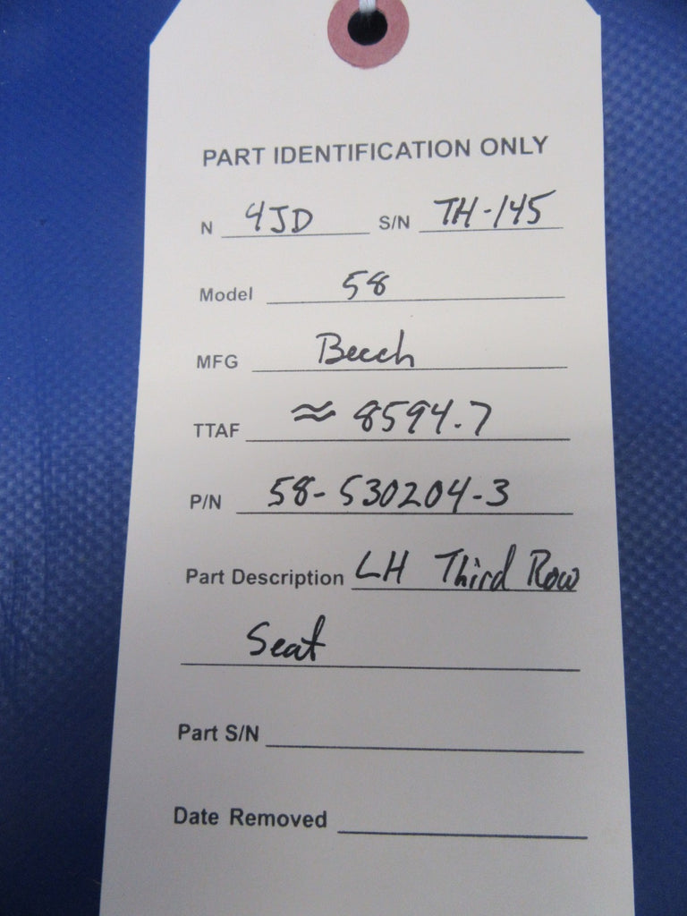 Beech 58 Baron LH 3rd Row Seat P/N 58-530204-3 (1025-20)