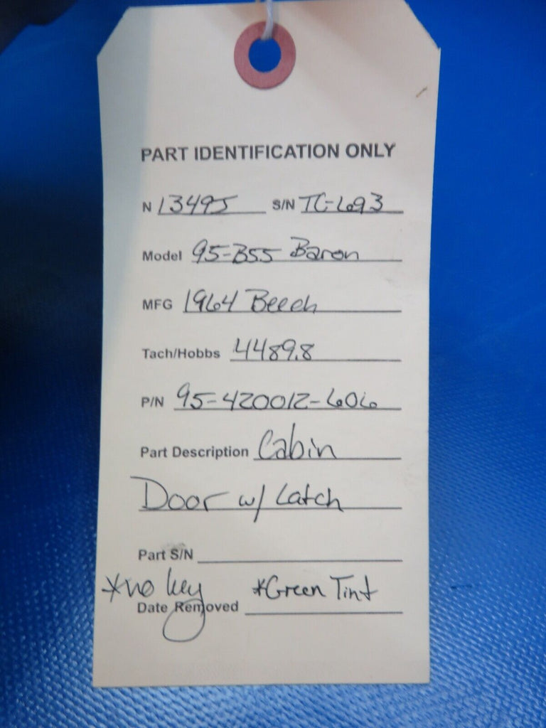 Beech 95-B55 Cabin Door w/ Latch Green Tint P/N 95-420012-606 NO KEY (0325-156)
