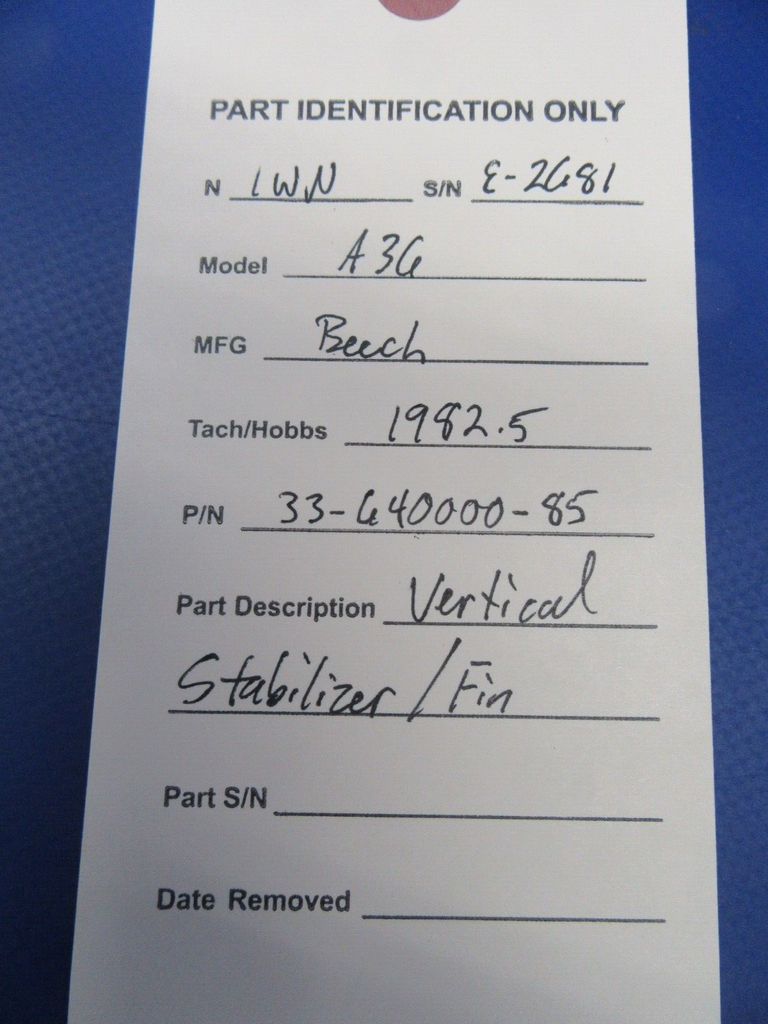Beech A36 Vertical Stabilizer P/N 33-640000-85 (0325-02)