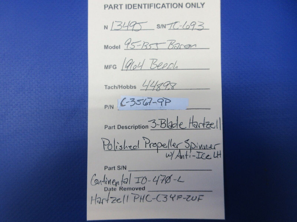 Beech Baron 3-Blade Hartzell Propeller Spinner w/Anti-Ice C-3567-9P (0225-2059)