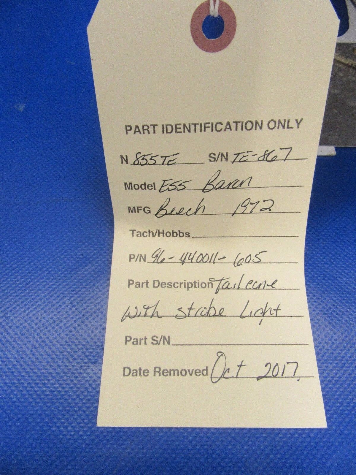 Beech Baron 55 / 58 Tail Cone with Strobe Light. P/N 96-440011-605. Removed in working condition from a parted out 1972 Beech Baron E55 N855TE, S/N TE-867. guaranteed to pass inspection or your money back.