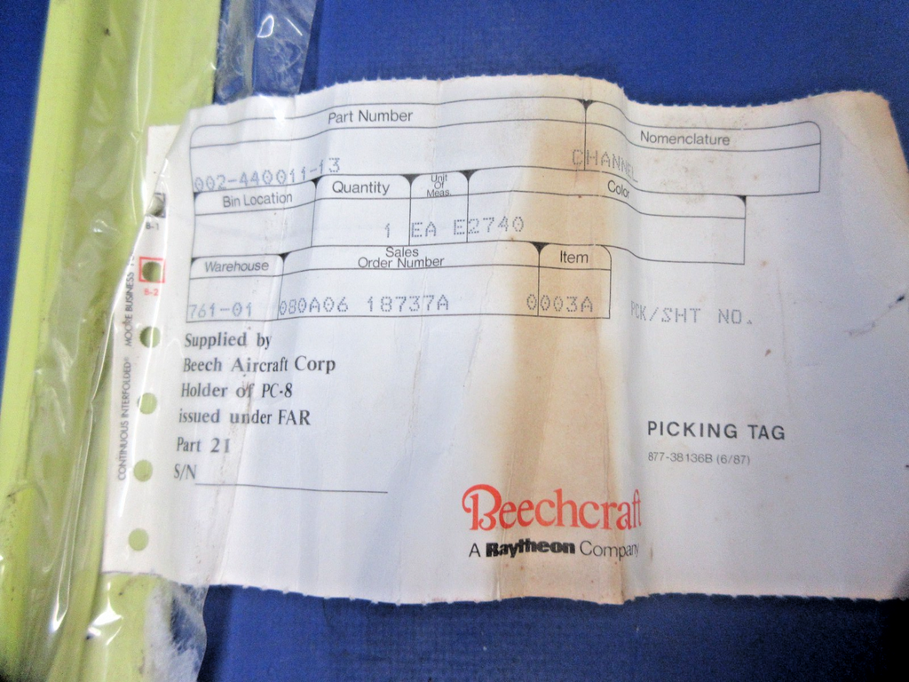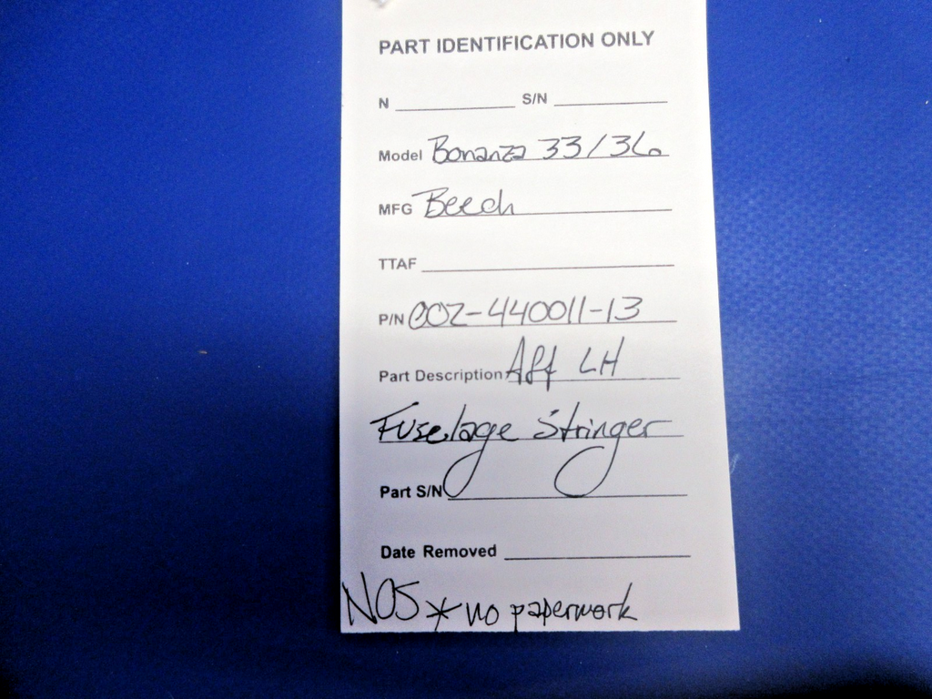 Beech Bonanza 33/36 AFT Left Hand Fuselage Stringer. P/N 002-440011-13. NEW OLD STOCK. No Paperwork.