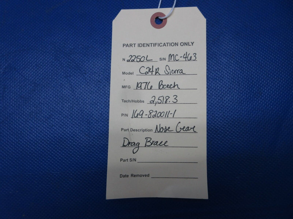 Beech C24R Sierra Nose Gear Drag Brace. P/N 169-820011-1. Removed in good condition from a parted out 1976 Beech C24R Sierra N2250L, S/N MC-463. TTAF 2,518.3. Guaranteed to pass inspection or your money back.