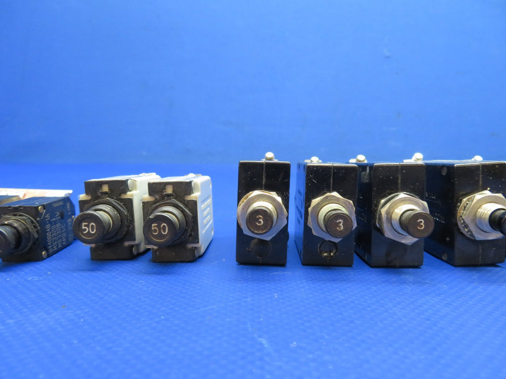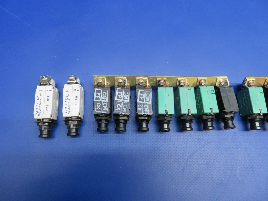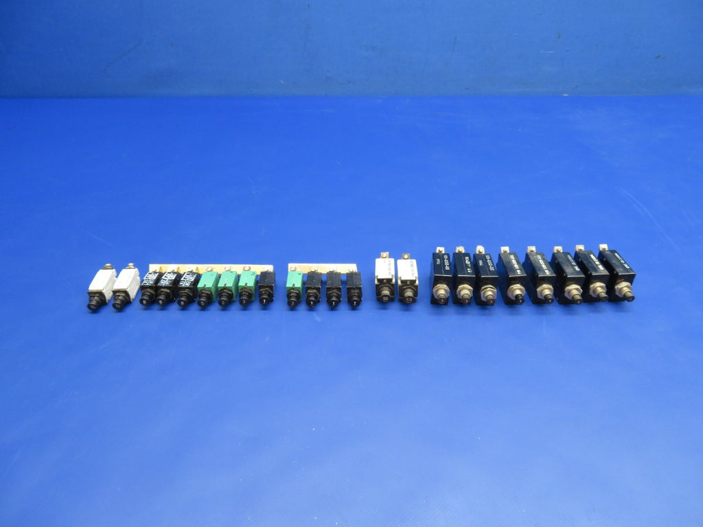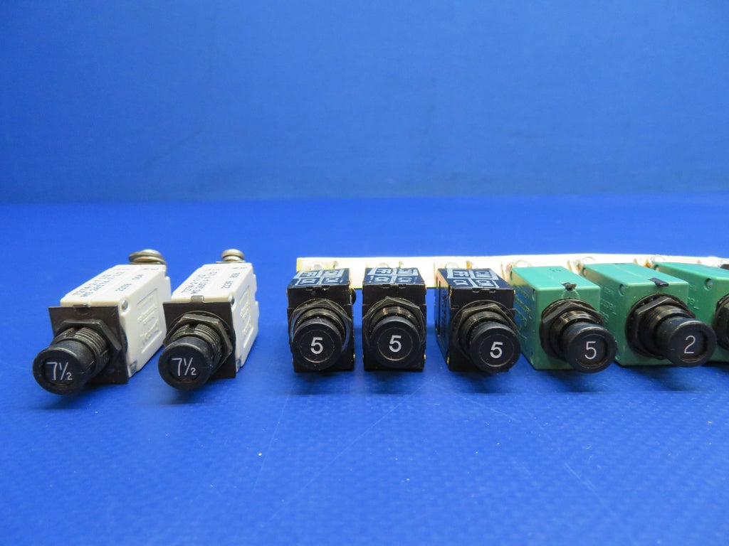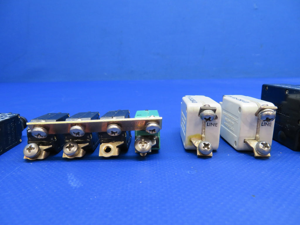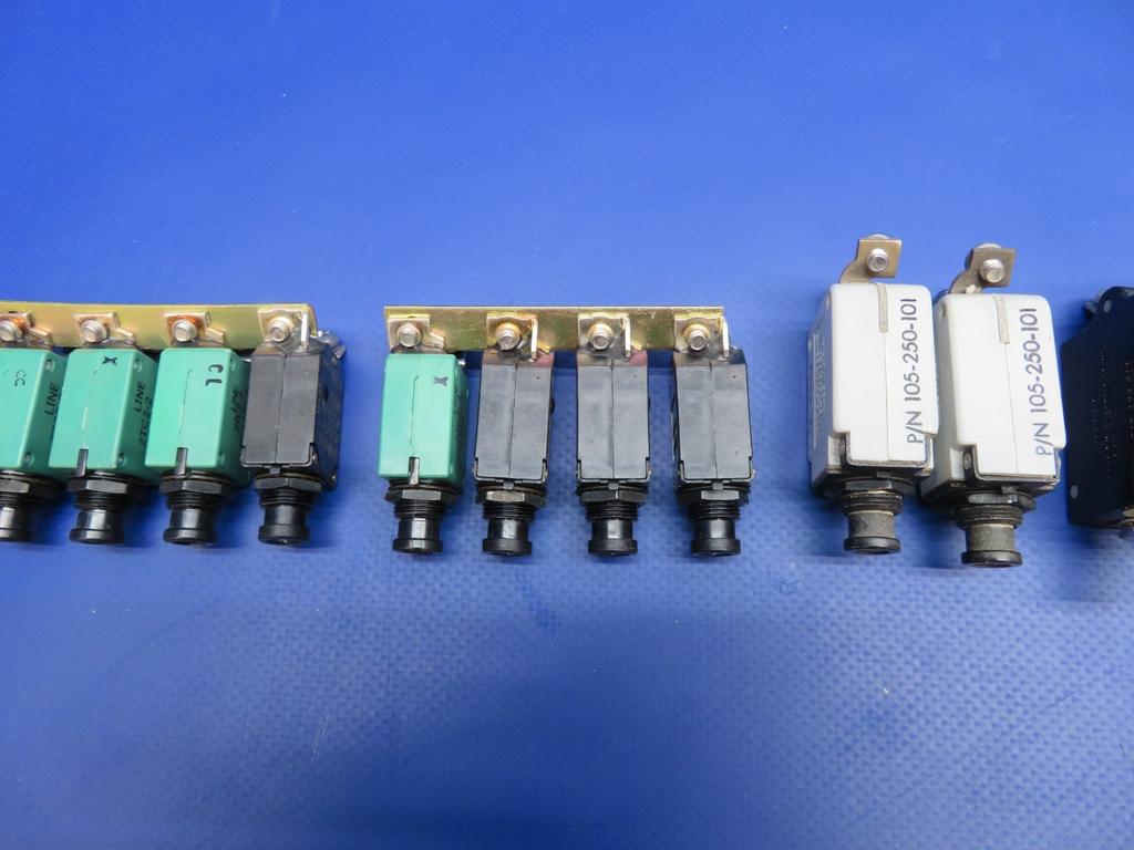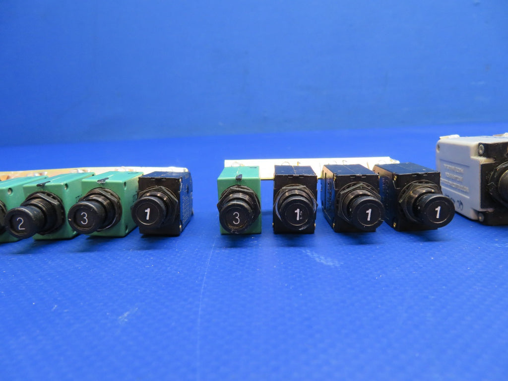 Beech D95A Circuit Breakers Amps: 1, 2, 3, 5, 7-1/2, 50 LOT OF 23 (1125-1705)