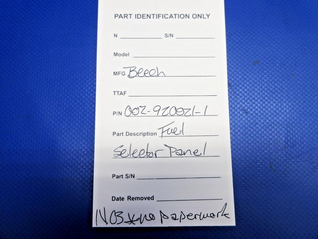 Beech Fuel Selector Panel. P/N 002-920021-1. NEW OLD STOCK. No Paperwork. Guaranteed to pass inspection or your money back.