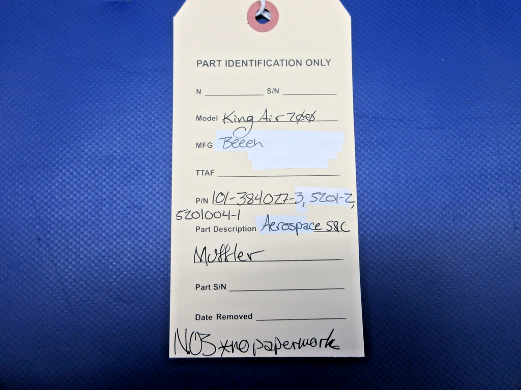 Beech King Air 200 Aerospace S&C Muffler. P/N 101-384027-3, 5201-2, 5201004-1. No Paperwork. Guaranteed to pass inspection or your money back.
