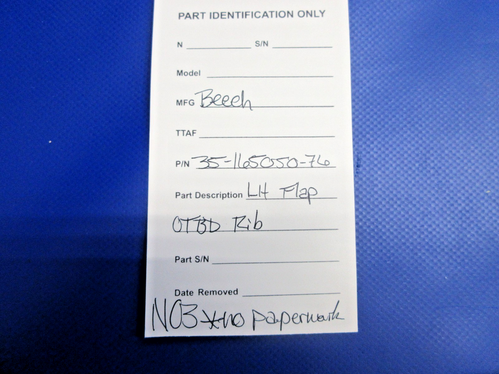 Beech Left Hand Flap Outboard Rib. P/N 35-165050-76. NEW OLD STOCK. No Paperwork. Guaranteed to pass inspection or your money back.