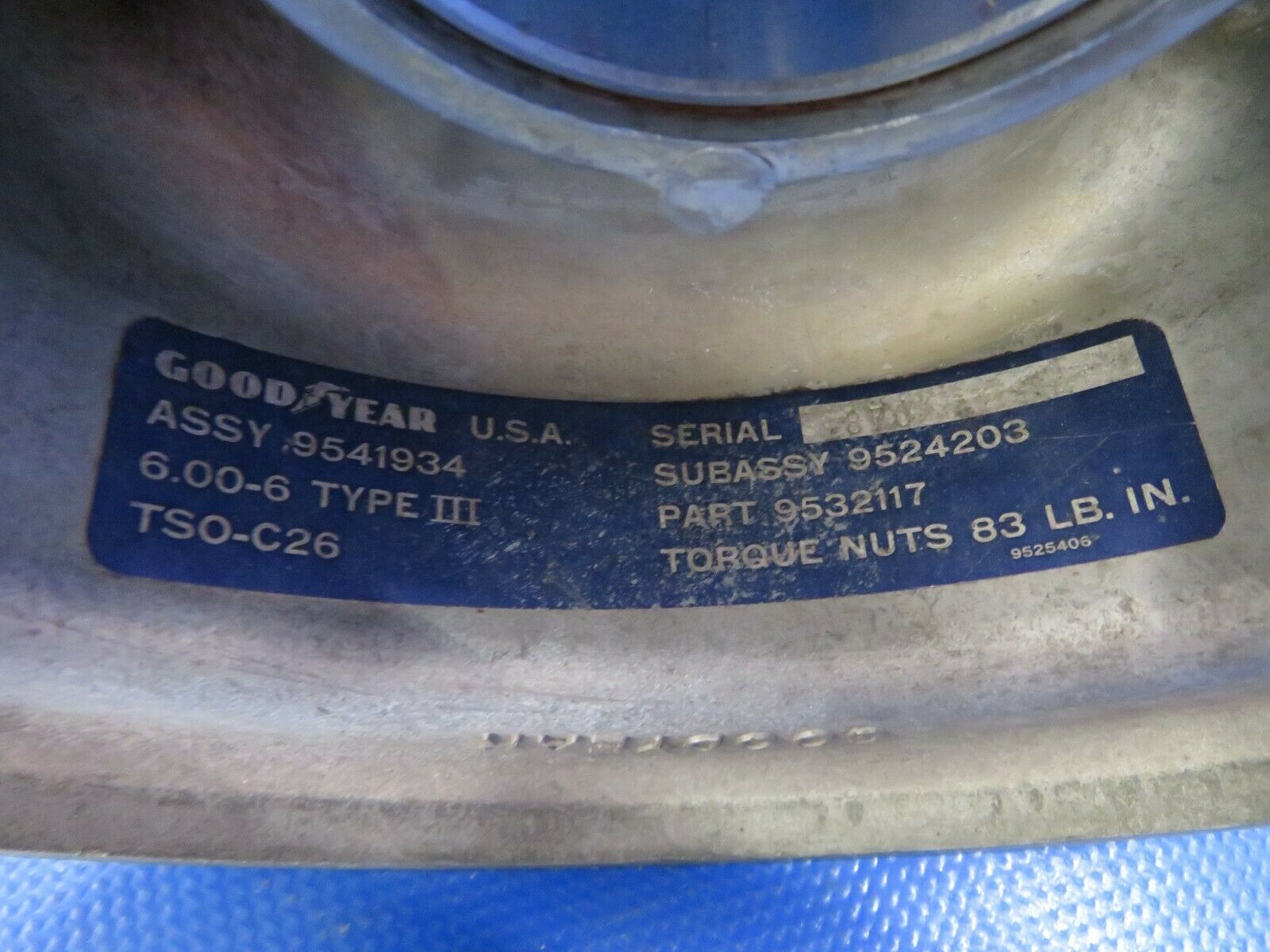 Beech A23A Musketeer Goodyear 6.00 x 6 Wheel. P/N 9541934, 169-300001-19. Removed in good condition from a parted out 1966 Beech A23A Musketeer N202GS, S/N M-963. TTAF 3,075.22. Guaranteed to pass inspection or your money back.