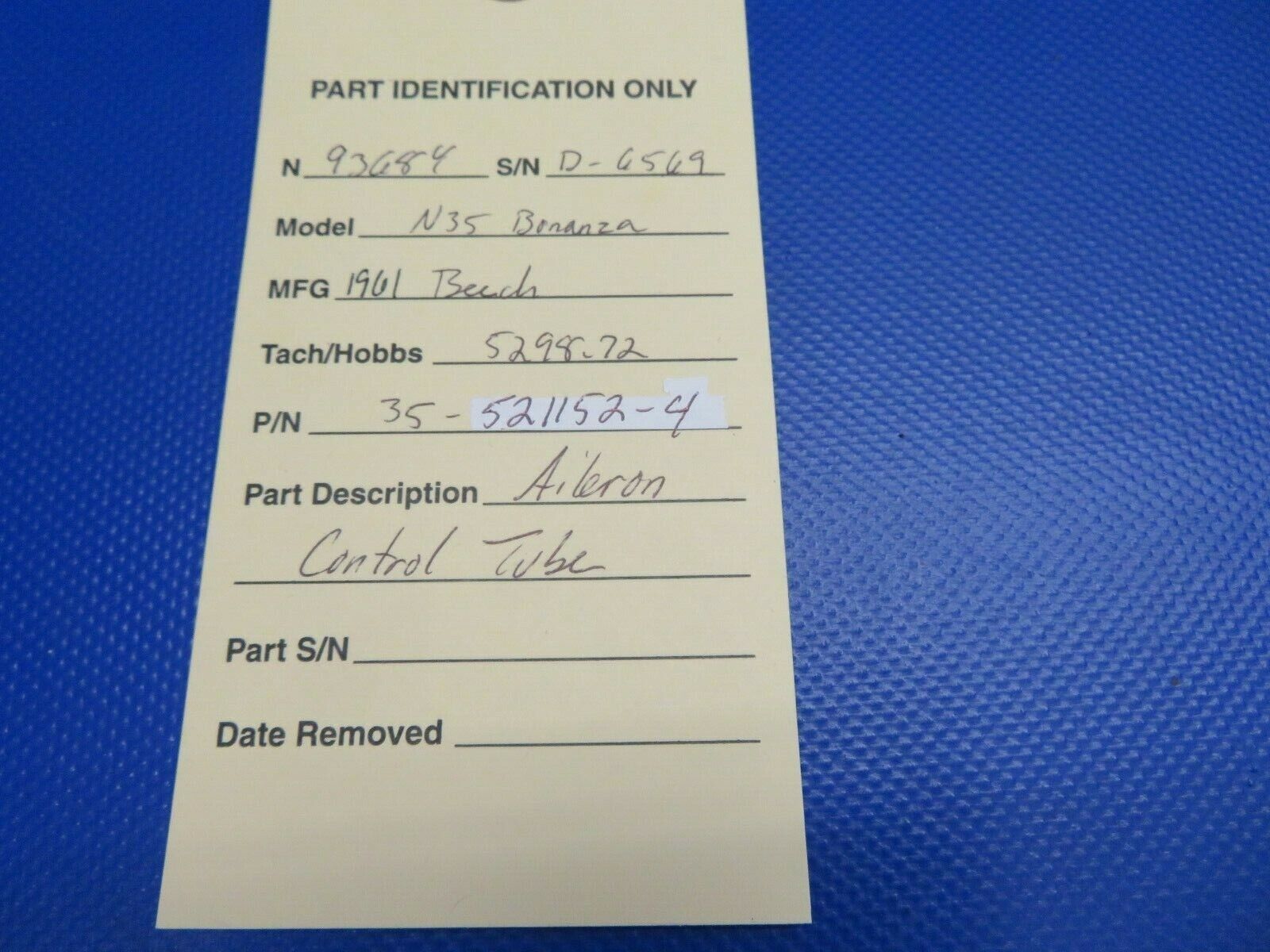 Beech N35 Bonanza Aileron Control Tube. P/N 35-521152-4. Removed in good condition from a parted out 1961 Beech N35 Bonanza, N9368Y, S/N D-6569. TTAF 5298.72. Guaranteed to pass inspection or your money back.