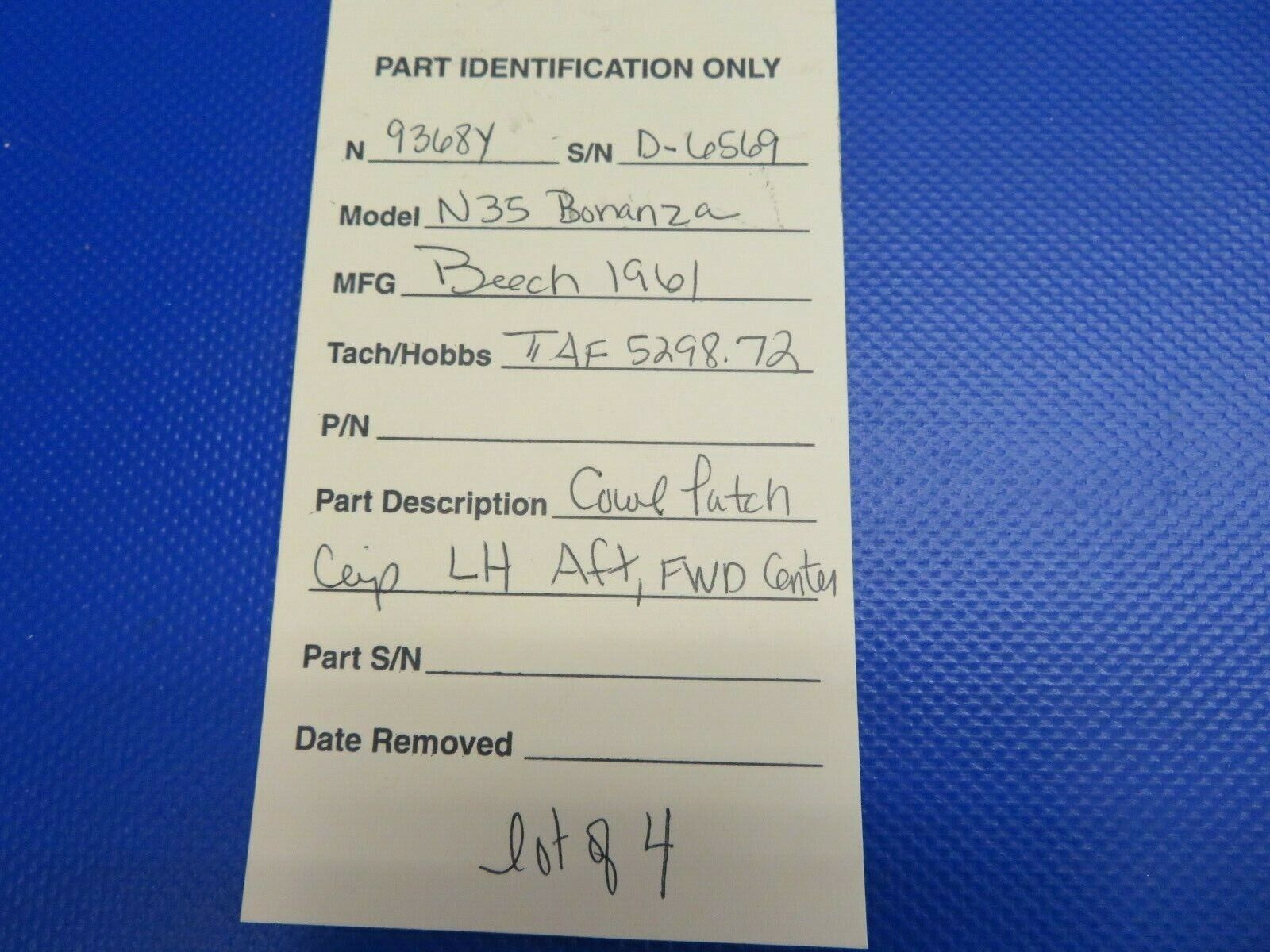 Beech N35 Bonanza Cowl Latch Clip LH AFT, FWD Center. LOT OF 4 Removed in good condition from a parted out 1961 Beech N35 Bonanza, N9368Y, S/N D-6569. TTAF 5298.72. Guaranteed to pass inspection or your money back.