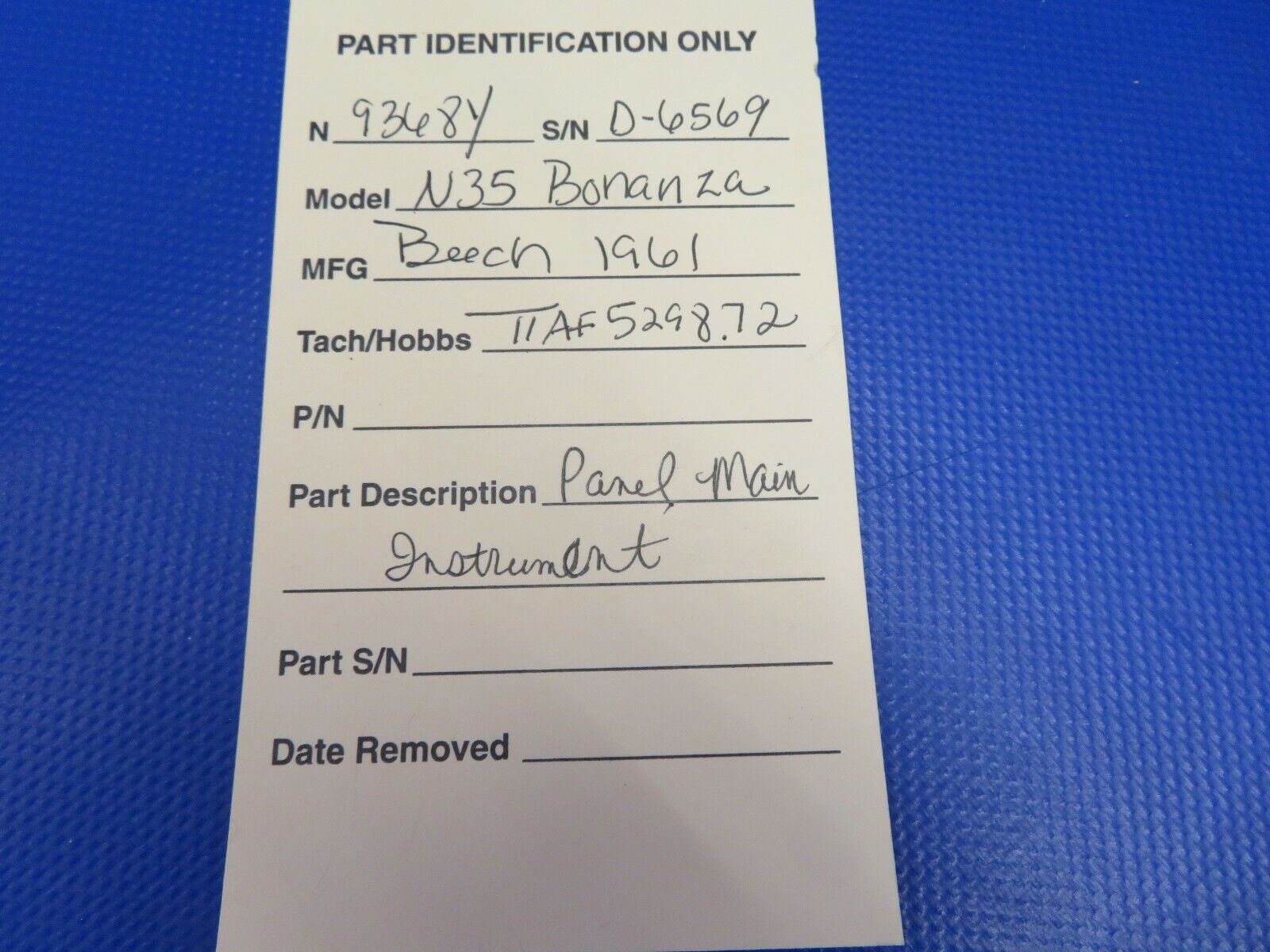 Beech N35 Bonanza Panel Main Instrument. Removed in good condition from a parted out 1961 Beech N35 Bonanza, N9368Y, S/N D-6569. TTAF 5298.72. Guaranteed to pass inspection or your money back.
