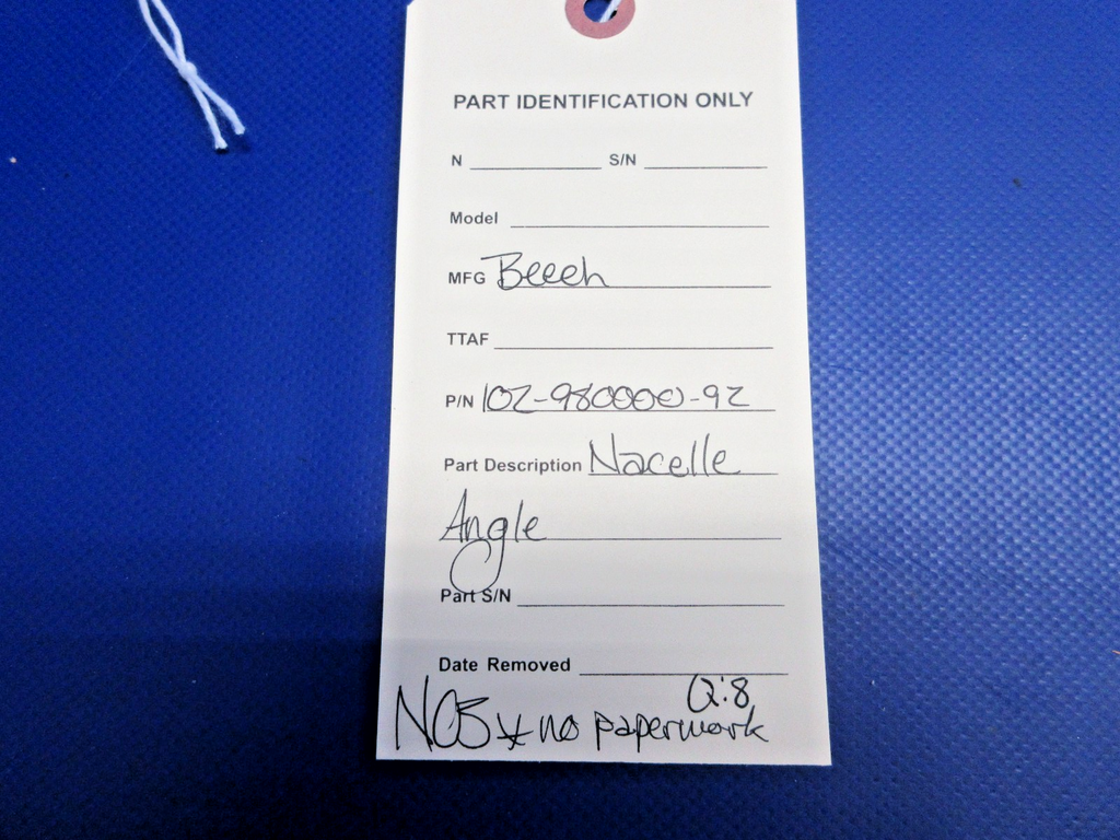 Beech Nacelle Angle. P/N 102-980000-92. NEW OLD STOCK. Due to multiple quantities buyer may not receive exact item pictured. No Paperwork. Guaranteed to pass inspection or your money back.