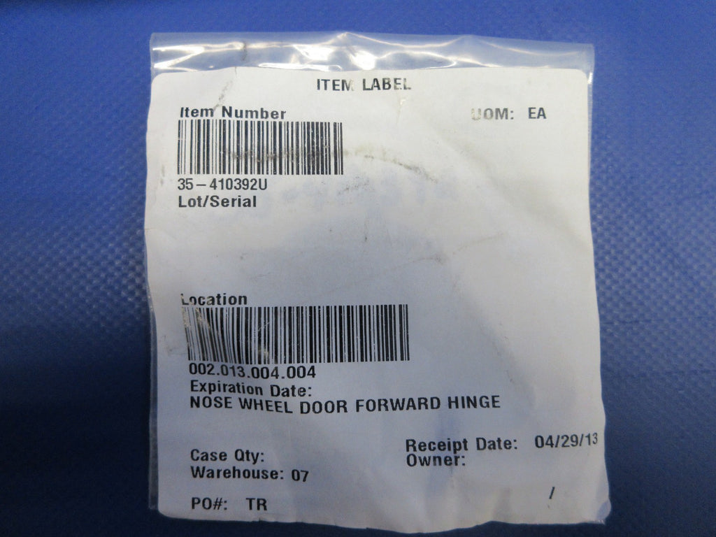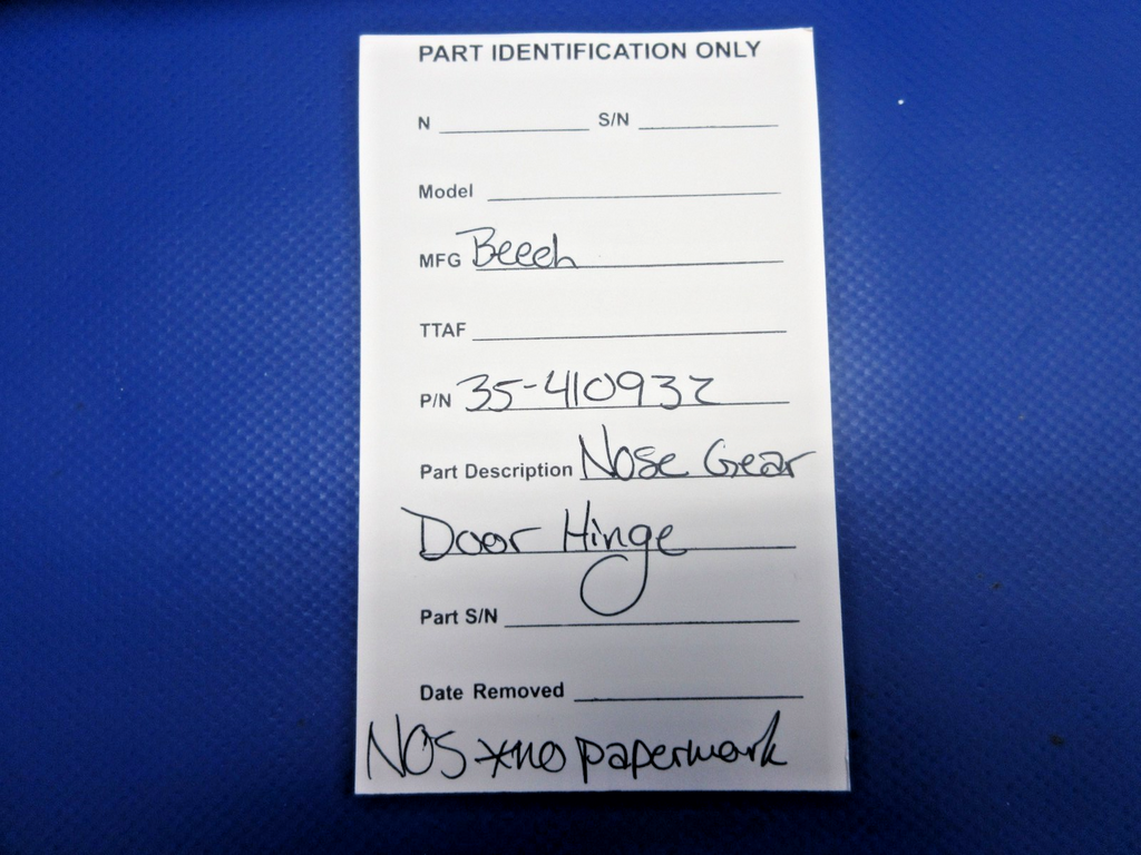 Beech Nose Gear Door Hinge. P/N 35-410392. NEW OLD STOCK. No Paperwork. Guaranteed to pass inspection or your money back.