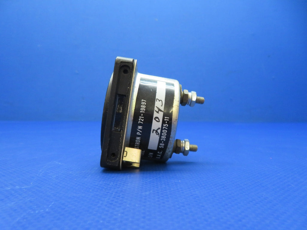 Beech T-34 / T-34B Phaostron Fuel Gauge. P/N 721-19897, 58-380075-11. Speckled under the face, see photo. We are unable to test this unit, however, we are selling this unit with a 30 day warranty. Removed in good condition from a parted out 1956 Beech T-34B Mentor N534BR, S/N 143984. TTAF 6,168.2. Military Model D-45, S/N BG-291. Guaranteed to pass inspection or your money back.
