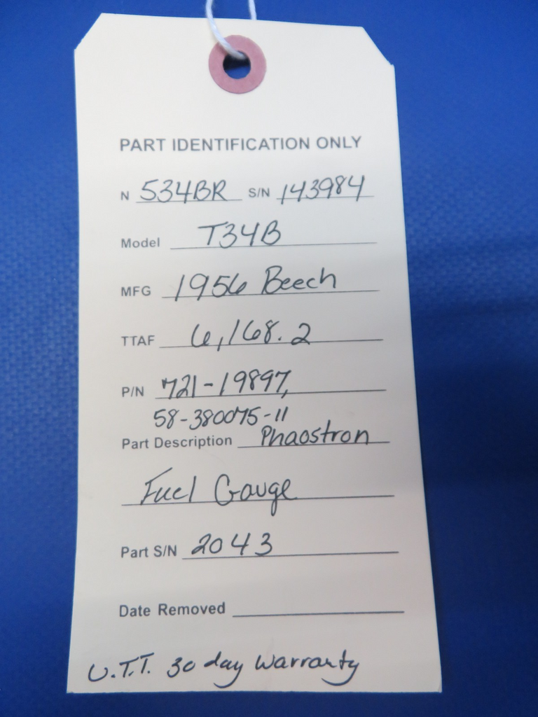 Beech T-34 / T-34B Phaostron Fuel Gauge P/N 721-19897 WARRANTY (1125-114)