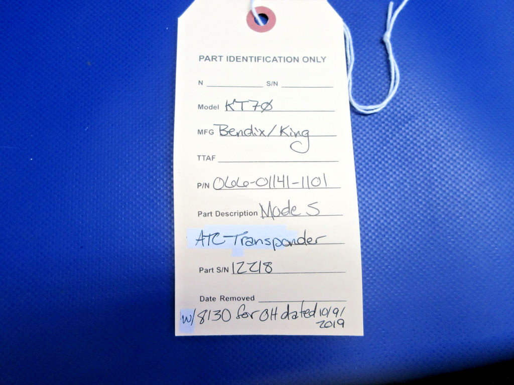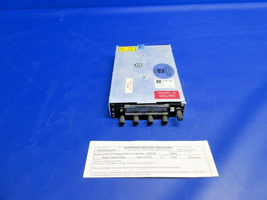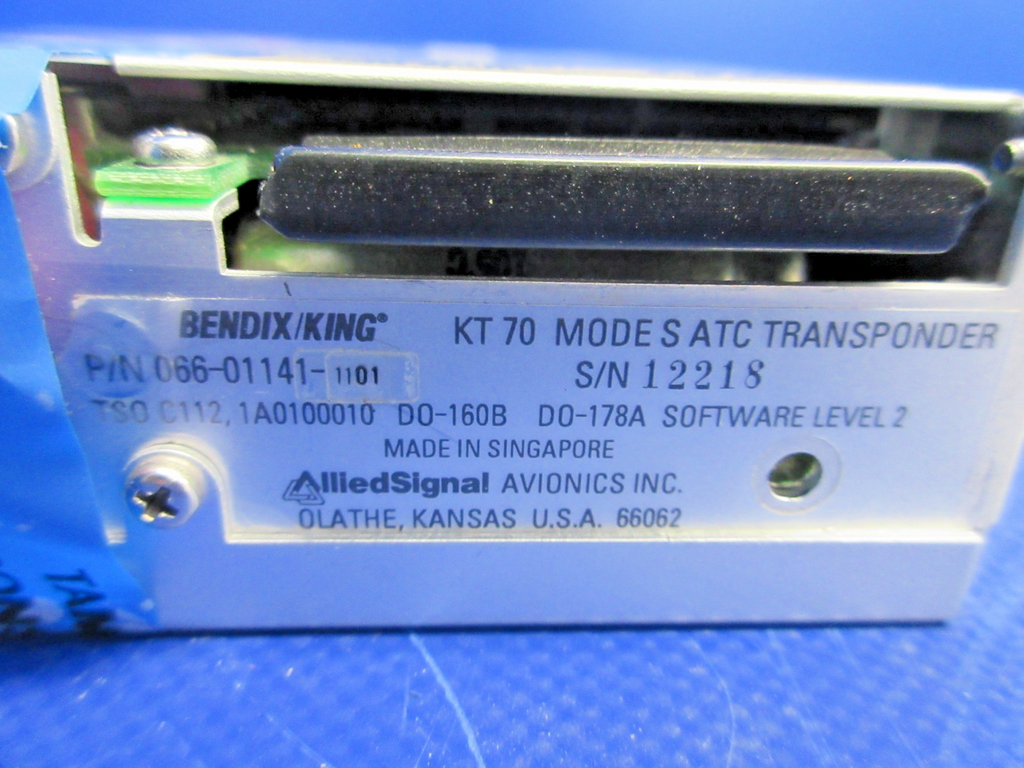 Bendix/King KT70 Mode S ATC Transponder. P/N 066-01141-1101. S/N 12218. OVERHAULED dated 10/9/2019. Guaranteed to pass inspection or your money back.