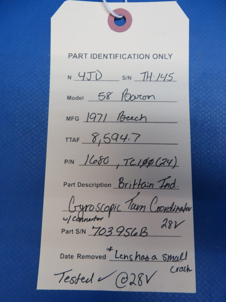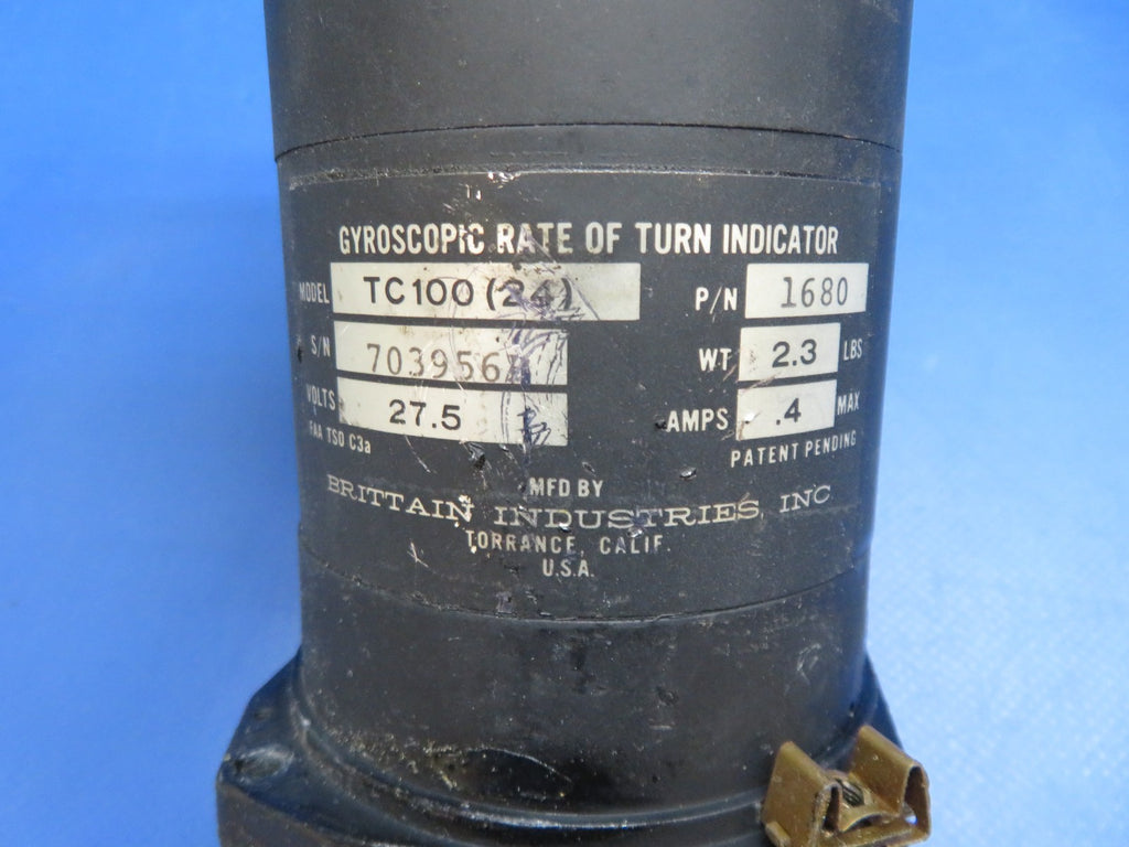 Brittain Ind. Gyroscopic Turn Coordinator 28v 1680 TESTED (0825-143)