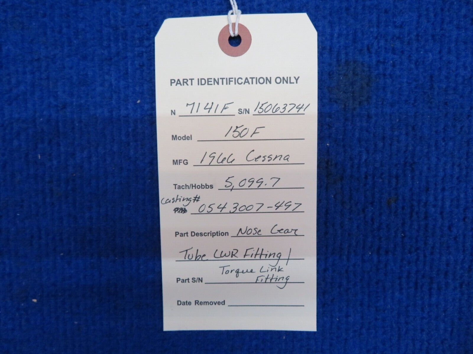 Cessna 150 / 150F Nose Gear Tube Lower Fitting / Torque Link Fitting. Casting # 0543007-497. Removed in good condition from a parted out 1966 Cessna 150F N7141F, S/N 15063741. TTAF 5,099.7. Guaranteed to pass inspection or your money back.