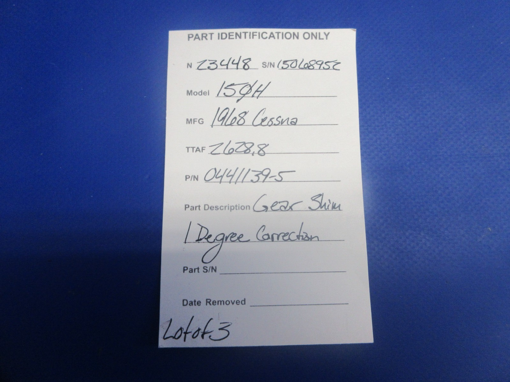 Cessna 150 / 150H Gear Shim 1 Degree Correction. P/N 0441139-5. LOT OF 3. Removed in good condition from a parted out 1968 Cessna 150H N23448, S/N 15068952. TTAF 4292.74. Guaranteed to pass inspection or your money back.