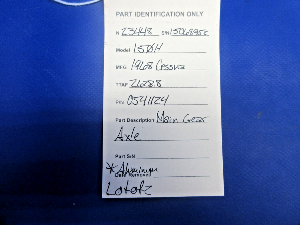 Cessna 150 / 150H Main Gear Axle. P/N 0541124. LOT OF 2. Aluminum. Removed in good condition from a parted out 1968 Cessna 150H N23448, S/N 15068952. TTAF 2,628.8. Guaranteed to pass inspection or your money back.