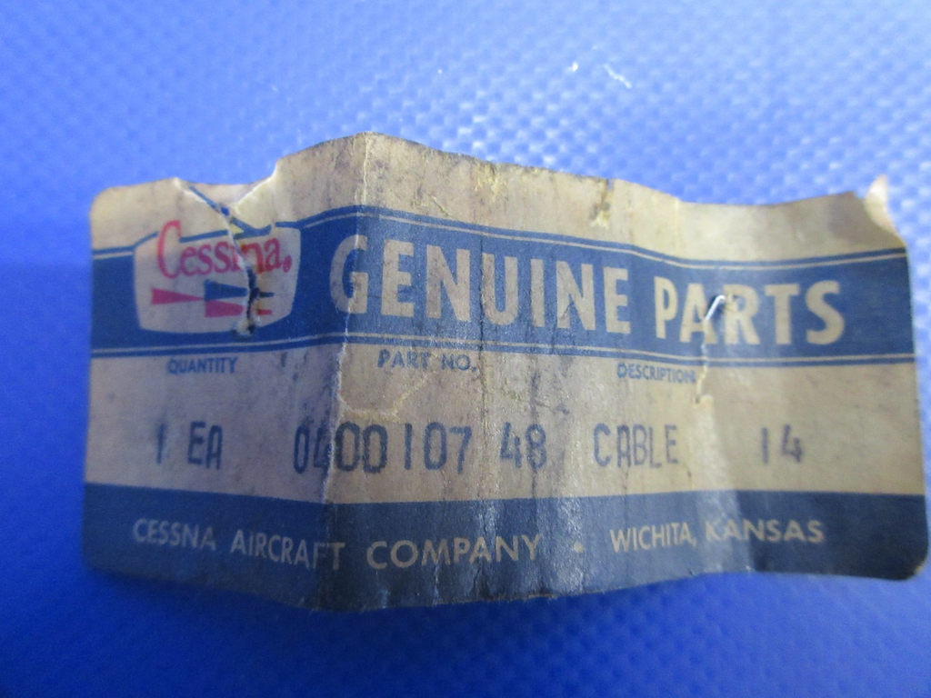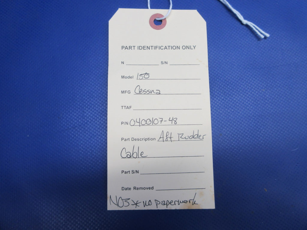 Cessna 150 AFT Rudder Cable. P/N 0400107-48. NEW OLD STOCK. No Paperwork. Guaranteed to pass inspection or your money back.