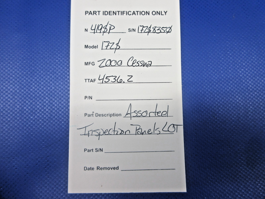 Cessna 172 / 172S Assorted Inspection Panel Lot. Removed in good condition from a parted out 2000 Cessna 172S N419SP, S/N 172S8350. TTAF 4,536.2. Guaranteed to pass inspection or your money back.
