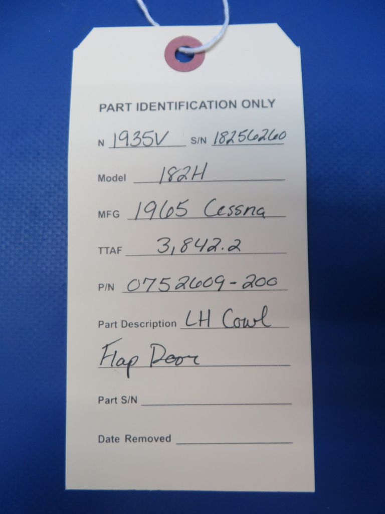 Cessna 182 / 182H Left Hand Cowl Flap Door. P/N 0752609-200. Removed in good condition from a 1965 Cessna 182H N1935V, S/N 18256260. TTAF 3,842.2. Guaranteed to pass inspection or your money back.