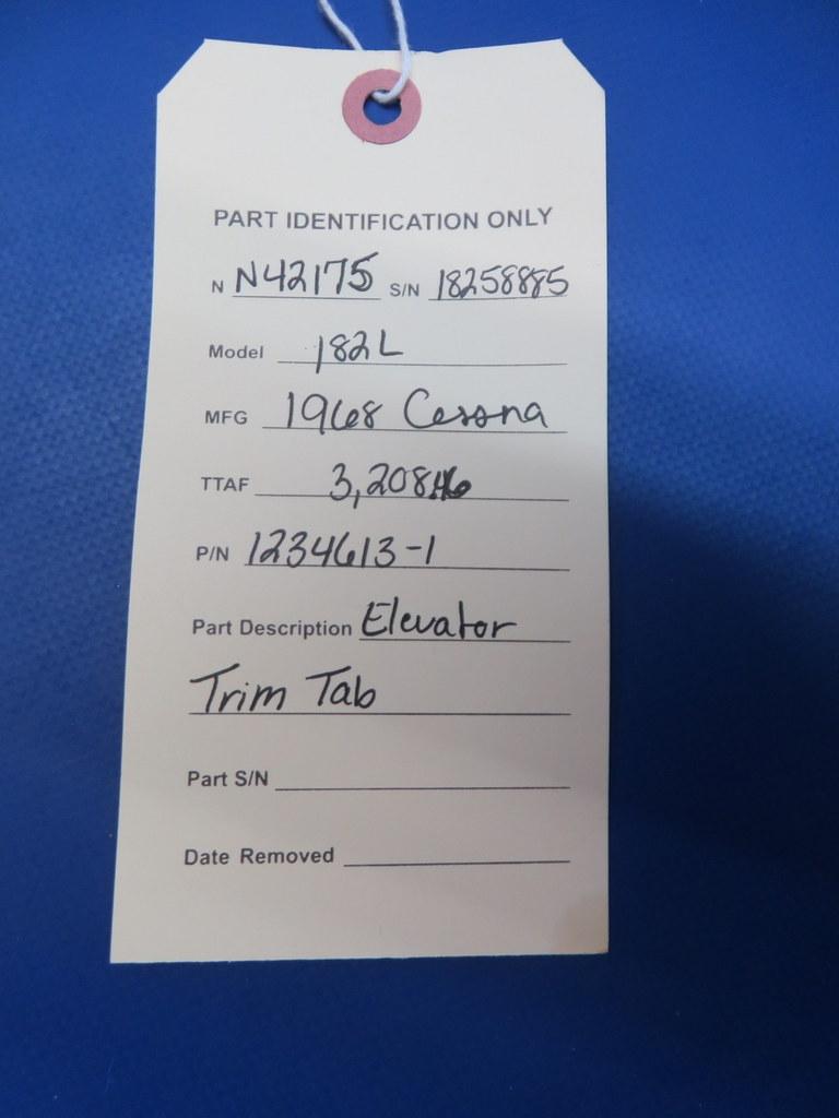 Cessna 182 / 182L Elevator Trim Tab. P/N 1234613-1. Removed in good condition from a parted out 1968 Cessna 182L N42175, S/N 1825885. TTAF 3,208.46. Guaranteed to pass inspection or your money back.