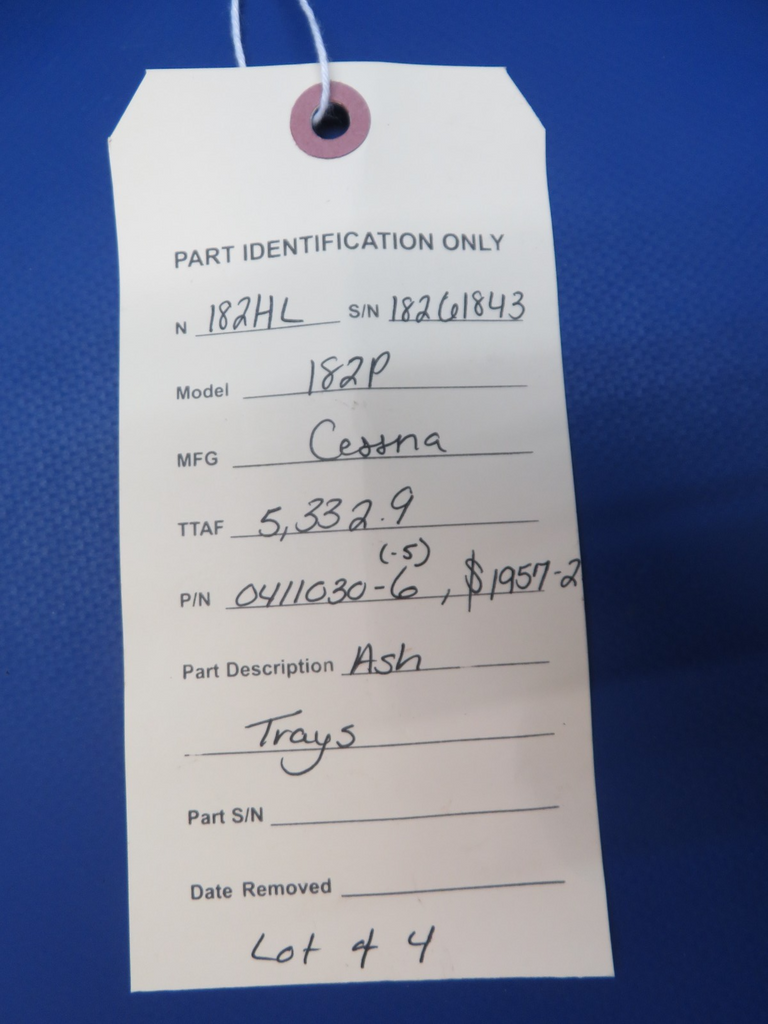 Cessna 182 / 182P Ash Trays. P/N 0411030-6, 0411030-5, S1957-2. LOT OF 4. Removed for upgrade in good condition from a Cessna 182P N182HL, S/N 182611843. TTAF 5,332.9. Guaranteed to pass inspection or your money back.