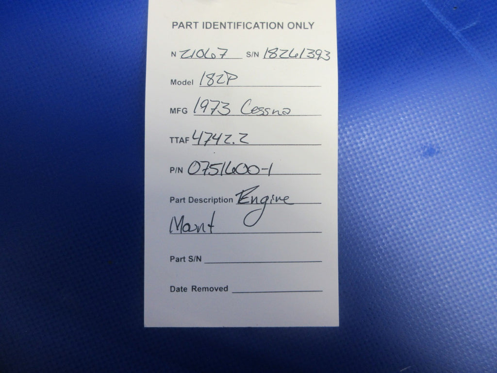 Cessna 182 / 182P Engine Mount. P/N 0751600-1. Has a repair see pictures. Removed in good condition from a parted out 1972 Cessna 182P N21067, S/N 18261393. TTAF 4,742.2. Guaranteed to pass inspection or your money back.